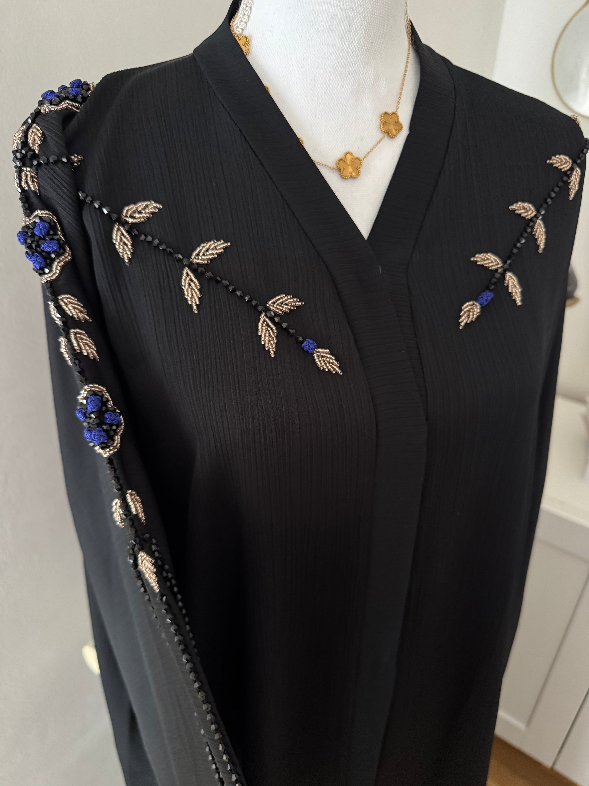 •Abaya rosa zoom noir avec perle